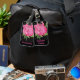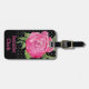 La etiqueta elegante del equipaje hecha en negro con los lunares blancos minúsculos y las ilustraciones de la acuarela de un peony rosado bonito florecen la floración. Personalice el texto rosado, en el frente y la parte posterior, para leer lo que usted quiere. Manera preciosa de manchar su equipaje de una distancia.