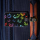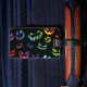 La calabaza Jack O Lantern se enfrenta en un patrón blanco y negro.
