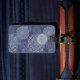 Diseño de estampado bonito y elegante en tonos de azul denim moody con monograma personalizado. Boho Denim Moody Blues Mandalas Monogrammed Lumaletas y etiqueta de bolsa.
