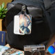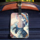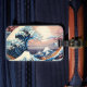 Estética rosa Gran ola con flores de cerezo rosa etiqueta para el equipaje Arte digital inspirado en la representación de arte japonés vintage de La Gran Ola" del artista japonés del siglo XIX Katsushika Hokusai.