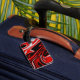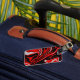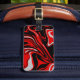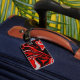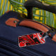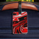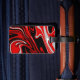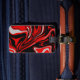Encuentra tu equipaje fácilmente con este patrón abstracto de tonos negros, rojos, grises y blancos.