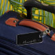 Etiqueta de equipaje con nombre personalizado monocroma en blanco y negro. Por favor, contácteme para obtener ayuda con la personalización si es necesario.