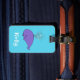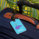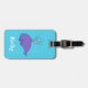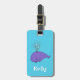 Etiqueta de identificación de equipaje de ballena sonriente. Los tonos azules de los ojos con un único personalizado de ballena, y los lugares de delante y de atrás para texto personalizado.