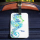 Esta etiqueta de equipaje personalizado se muestra en blanco con un diseño de impresión de caballito de mar azul. Personalizar esta etiqueta y cambia el nombre del ejemplo al suyo con esta plantilla.