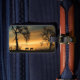 Hermosos colores del suroeste y caballos con robles en silueta contra el amanecer matutino. Super bonito, sólo personaliza la parte posterior de estas bellas etiquetas de equipaje!