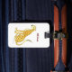 Un guepardo sentado y la palabra África en una etiqueta para el equipaje.