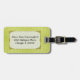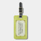 Adorable etiqueta para equipaje, con gráficos de un aspecto de cuero de avestruz chartreuse. Un área de texto elegante enmarcada en la parte delantera, y gráficos de un área de monograma de alambre redondo de tono dorado en la parte trasera de la etiqueta, tiene texto personalizado negro listo para personalizar. Una forma elegante de distinguir su equipaje del resto, y fácilmente identificable para que no se quede perdido por mucho tiempo.