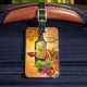 Etiqueta de equipaje con un diseño artístico con una temática vitivinícola y sus textos personalizados.