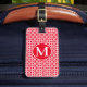 etiqueta de equipaje de doble diamante con estampado de marco redondo rojo monogramado
