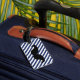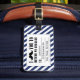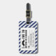 FUNNY MUSTACHE LUGGGAGE TAG. MUSTACHE NEGRO CON PATRÓN DE CADENAS AZULES Y BLANCAS. "TE MUSTACO QUE REGRESES MI EQUIPAJE". MOVIEFUN© Para obtener otros colores de bigote o de rayas de fondo, póngase en contacto con la tienda.
