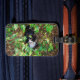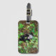 Esta etiqueta de equipaje es una foto que tomé de un gatito blanco y negro saltando sobre un Bush de consuelo.