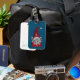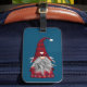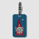 Un bonito gnomo grisáceo de invierno vestido con un traje de mimbre con copos de nieve y un corazón en la etiqueta de su gorra.