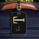 Etiqueta de equipaje de Golden T con detalles en el reverso.