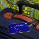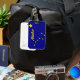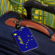 Etiqueta del equipaje con la imagen de la bandera del estado de Alaska, en colores azul y oro.