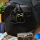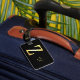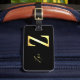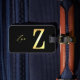 Golden Z nombre etiqueta de equipaje con detalles en el reverso.