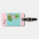 Flamingo y palmera pintados a mano en verano tropical de moda y elegante con iniciales negras monogramadas etiqueta para el equipaje.
