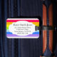 Etiqueta de la franja del arcoiris brillante en rojo, naranja, amarillo, azul, verde, morado. Personalizar el reverso de esta etiqueta multicolor con los detalles de su nombre y dirección. Patrón y etiqueta de Sarah Trett.