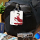Un bailarín de flamenco de bonito con texto personalizado decora la parte delantera de esta etiqueta de equipaje.