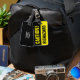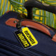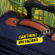 Graciosa etiqueta de equipaje para maletas y maletas de gran riesgo biológico. Diseño humorístico de rótulos de advertencia negros y amarillos para viajeros. Una idea de regalo para los hombres, mujeres y niños que viajan.