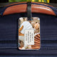 Etiqueta para el equipaje con un diseño inspirado en la playa, con conchas y pez estrella. Los fondos de texto son formas separadas y se pueden arrastrar, escalar (o eliminar si no las necesita). También puede personalizar sus colores y formas, tanto en la parte delantera como en la trasera.