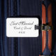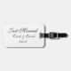 Etiqueta del equipaje del personalizado mostrada en blanco/negro con texto de Just Married. Personalizar esta etiqueta y cambia nombres y fecha a la tuya. Incluso se pueden cambiar los colores.