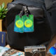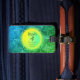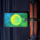 Etiqueta de equipaje personalizable con un mágico patrón amarillo azul brillante. El nombre, la información de contacto y los eslóganes se pueden personalizar.