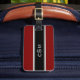 Etiquetas clásicas de equipaje en rojo, negro y gris, adecuadas para hombres y mujeres. Hace un regalo excelente para los graduados. Añadir un monograma en la parte delantera y la información de contacto completa en la parte posterior. Editar al monograma, nombre e información que prefiera.