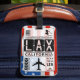 Esta etiqueta de equipaje de los EE.UU., Los Ángeles, el código del aeropuerto LAX hará que su equipaje destaque en el carrusel. Esta divertida etiqueta incluye información auténtica y una sección de detalles al revés.