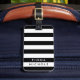 Rayas blancas y negras, limpias y modernas, personalizable completo con nombres y detalles de contacto. ¡Nunca más pierdas la pista de tu bolso!