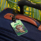 ¿Amar a los tigres y amar viajar? Luego necesitas nuestra etiqueta de equipaje "Frente del tigre del desfile de animales" y "Personalizado trasero" con nuestro arte original de un tigre tigre tierno, blanco y negro, parado en una sombreada jungla verde con un cielo amarillo y verde pintado por el ilustrador de nuestros talentosos niños, Traci Van Wagoner. Al lado de tu nombre, está el tigre de delante, y al fondo con tu información, encontrarás el tigre caprichoso de atrás. Hace un gran regalo para los amantes de los tigres, los amantes de los animales salvajes y los amantes del arte animal divertido de todas las edades. ¡Consigue uno para ti o para un amigo hoy! ¡Rugir!