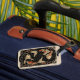 Viaja con suavidad. Esta etiqueta presenta dos líneas de agua y peces cósmicos, ideales para viajeros intuitivos y atentos.