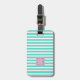 Etiqueta para el equipaje de preppy con fondo pastel en color de su elección con rayas y monograma de tres partes en un soporte para monograma de color. En el reverso se mantiene la información en el tipo de letra sans serif sobre un fondo blanco.