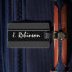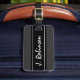 Etiqueta personalizada del equipaje del viaje de la escritura de la escritura. Etiqueta del estilo elegante para los bolsos y las maletas de lujo. Diseño negro y gris clásico de la raya con las letras intitial conocidas cones monograma blancas. Idea elegante del regalo para los hombres y las mujeres. Texto manuscrito hermoso. Nombre adaptable.