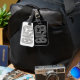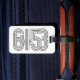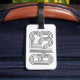 Coordine su equipaje con esta etiqueta de equipaje de doble cara en blanco y negro.