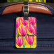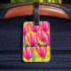 Bonitos dibujos de tulipanes acuarelas, rayas amarillas y naranjas, etiquetas de equipaje personalizadas.