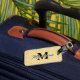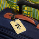 Fondo de tejido amarillo con monograma. Cartas monogramadas personalizadas y etiquetas de nombre para maletas y bolsas. Diseño elegante de tipografía. Un gran regalo para la familia y los amigos.