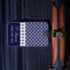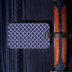 La etiqueta del equipaje ofrece el modelo del quatrefoil de los azules marinos rematado con dos filas de las perlas de marfil.