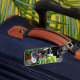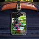 Etiqueta del equipaje que ofrece una foto de la diversión y de los rainboots enrrollados.