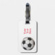 Una gran etiqueta del equipaje que le dejará destacarse de la muchedumbre. Ofrece un gráfico de un balón de fútbol en el frente y la parte posterior. Usted puede modificar el texto para requisitos particulares rojo. Perfeccione para su equipaje o bolso del fútbol.