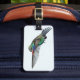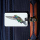 Etiqueta del equipaje con los colores vibrantes de un colibrí del broadbill