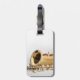 Esta etiqueta del equipaje tiene una imagen de un saxofón curvado del soprano.