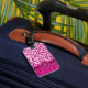 Etiqueta de equipaje inicial en monograma de impresión animal brillante en tonos rosados. Personalizar con su dirección e inicial de su elección. En el ejemplo se lee B delante y se personalizar el reverso de esta etiqueta con los detalles de su nombre y dirección. Elegante, elegante y único, ideal para viajes de negocios y vacaciones. Diseñado por Sarah Trett.