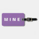Etiqueta púrpura divertida del equipaje con la "mina" escrita en ella