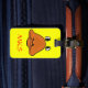 Diseño hilarante de la etiqueta del equipaje de la cara del pato del dibujo animado. Modifique sus iniciales para requisitos particulares en el Info delantero y personal en la parte posterior. El diseño colorido de la diversión ayuda a identificar el equipaje rápidamente.