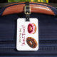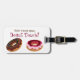 Etiqueta caprichosa del equipaje, con los gráficos de dos anillos de espuma, en el fondo marrón delantero y sólido, en la parte posterior. ¡El texto de encargo, en el frente, lee no su bolso, tacto del buñuelo! Personalice el texto rosa claro, en la parte posterior, con su información.