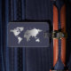Moderno y elegante, esta etiqueta del equipaje ofrece un falso mapa del mundo de plata. Añádale nombre y dirección a la parte posterior para una etiqueta verdad personalizada del equipaje.