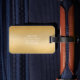 Etiqueta moderna y elegante para el equipaje con iniciales monogramadas y nombre en forma blanca y geométrica en oro para personalizar sobre un fondo dorado. La parte posterior de la etiqueta está en oro con tu nombre, dirección y número de teléfono en blanco.