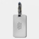 Etiqueta moderna y elegante para el equipaje con inicial monogramado y nombre en forma negra y geométrica en oro para ser personalizado en un fondo plateado. La parte posterior de la etiqueta es plateada con nombre, dirección y número de teléfono en negro.