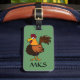 Diseño enrrollado maravilloso del gallo del dibujo animado. Él es lindo y diversión y lleno de personalidad. Gran idea para un regalo. Modifique sus iniciales para requisitos particulares en el Info delantero y personal en la parte posterior. El diseño colorido de la diversión ayuda a identificar el equipaje rápidamente.