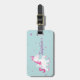 Etiqueta personalizada del equipaje que ofrece un vuelo mágico lindo del unicornio en el cielo con las estrellas púrpuras. Diseño lindo y de la diversión para el special para un chica que ama unicornios y potros mágicos. Regalo con monograma de encargo.